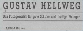 Im Juni 1945, kurz nach Beendigung des zweiten Weltkrieges, machte sich der Schuhmachermeister Gustav Hellweg im Haus Quelle Nr. 176 selbstständig. Es gab noch keine Neuware zu verkaufen, die Schuhreparatur stand an erster Stelle. Am ersten Eröffnungstag wurden ca. 500 Paar repararturbedürftige Schuhe abgegeben.